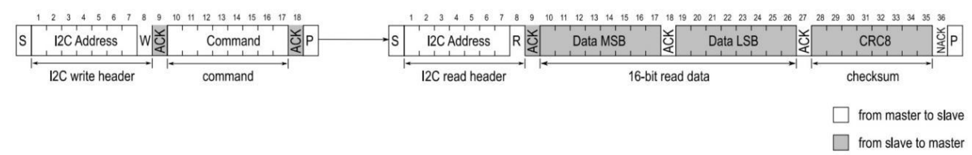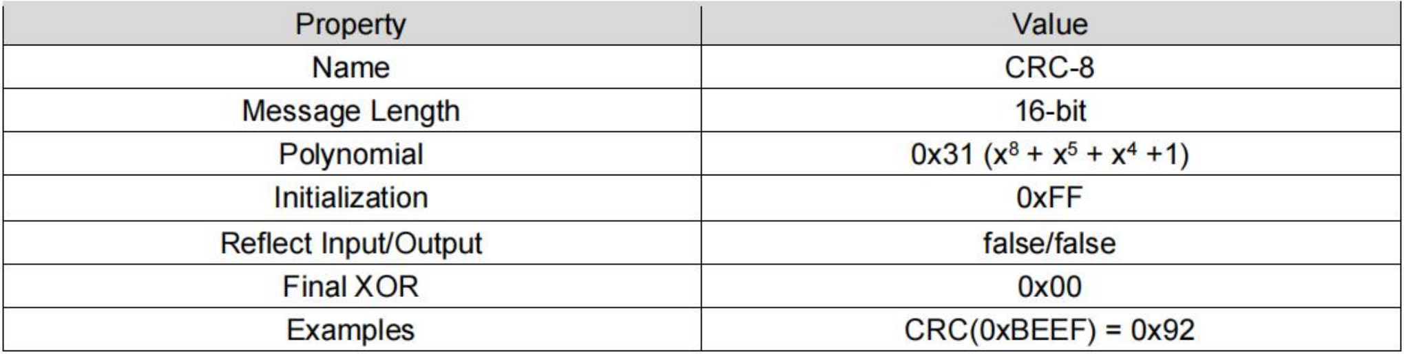5、加熱器一旦啟用就會(huì)產(chǎn)生大量電流(最高可達(dá)75mA)。雖然專用電路能平穩(wěn)地吸收電流,但電源功率必須足夠大,以避免電壓過低而引起的傳感器復(fù)位。如果需要更高的加熱溫度,則必須向傳感器發(fā)送連續(xù)的加熱命令。加熱器只能在低于65℃的環(huán)
