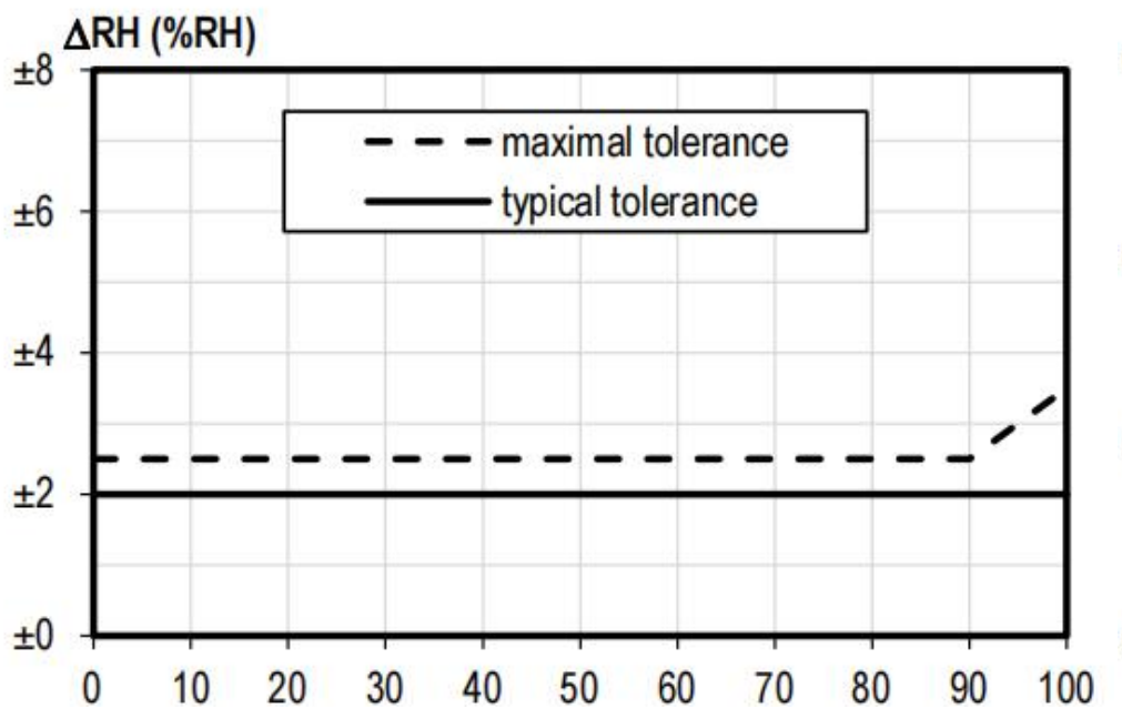 傳感器顯示出最佳性能。長期暴露在正常范圍以外的條件下,特別是在高濕度下,可能會(huì)暫時(shí)偏移相對(duì)濕度信號(hào)(例如:在大于80%相對(duì)濕度的環(huán)境下保持60